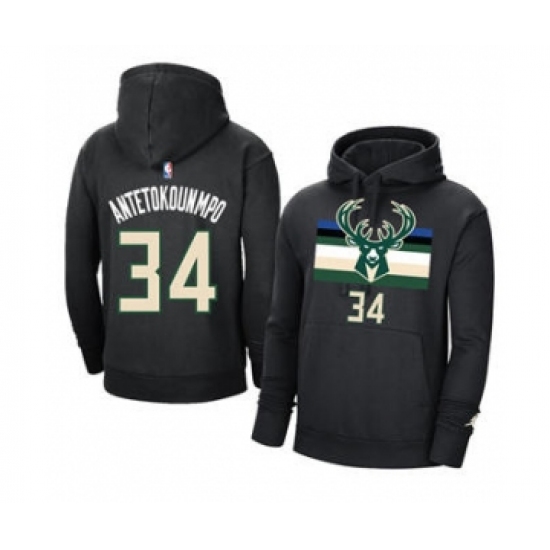Men's Milwaukee Bucks #34 Giannis Antetokounmpo 2021 Black Pullover Basketball Hoodie
