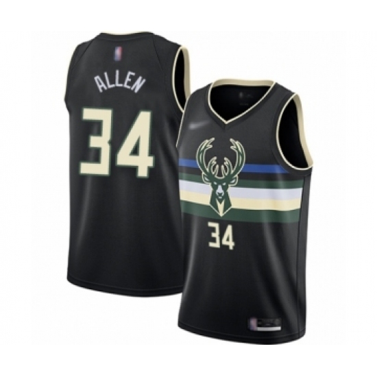 >Men's Milwaukee Bucks #34 Ray Allen Authentic Black Finished Basketball Jersey - Statement Edition