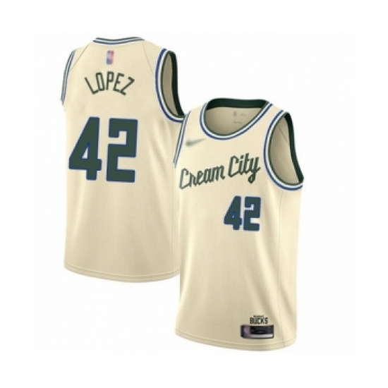 Men's Milwaukee Bucks #42 Robin Lopez Swingman Cream Basketball Jersey - 2019 20 City Edition