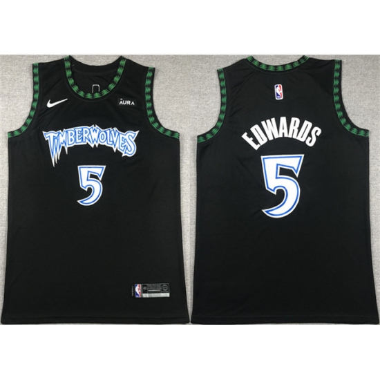 Men's Minnesota Timberwolves #5 Anthony Edwards Black City Edition Stitched Jersey