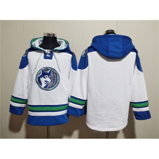 Men's Minnesota Timberwolves Blank White Lace-Up Pullover Hoodie
