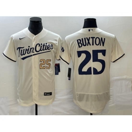 Men's Minnesota Twins #25 Byron Buxton Number 2023 Cream Flex Base Stitched Jersey