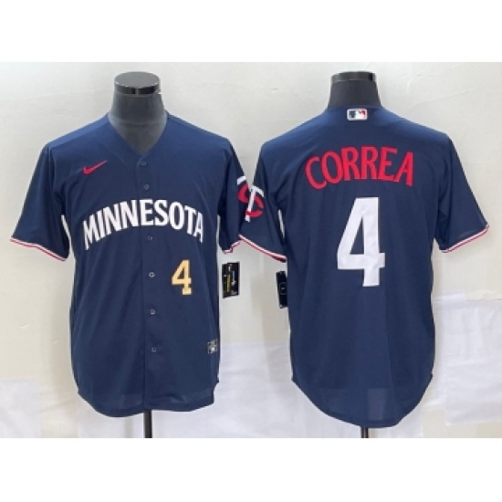 Men's Minnesota Twins #4 Carlos Correa Number 2023 Navy Blue Cool Base Stitched Jersey