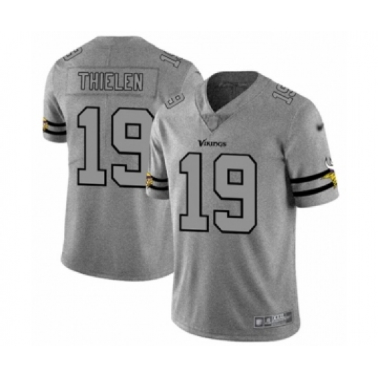 >Men's Minnesota Vikings #19 Adam Thielen Limited Gray Team Logo Gridiron Football Jersey