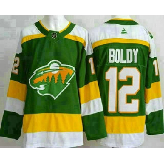 >Men's Minnesota Wild #12 Matthew Boldy Green Alternate Authentic Jersey