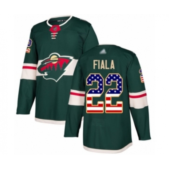 >Men's Minnesota Wild #22 Kevin Fiala Authentic Green USA Flag Fashion Hockey Jersey