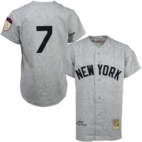Home>MLB>New York Yankees>Mickey Mantle>Men's Mitchell and Ness 1951 New York Yankees #7 Mickey Mantle Replica Grey Throwback MLB Jersey