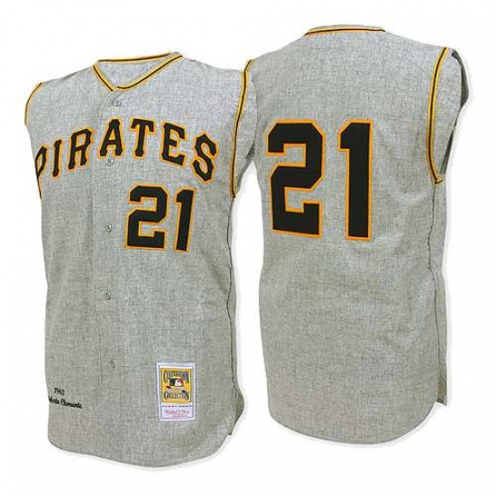 Men's Mitchell and Ness 1962 Pittsburgh Pirates #21 Roberto Clemente Authentic Grey Throwback MLB Jersey