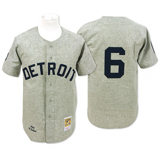 Men's Mitchell and Ness 1968 Detroit Tigers #6 Al Kaline Replica Grey Throwback MLB Jersey