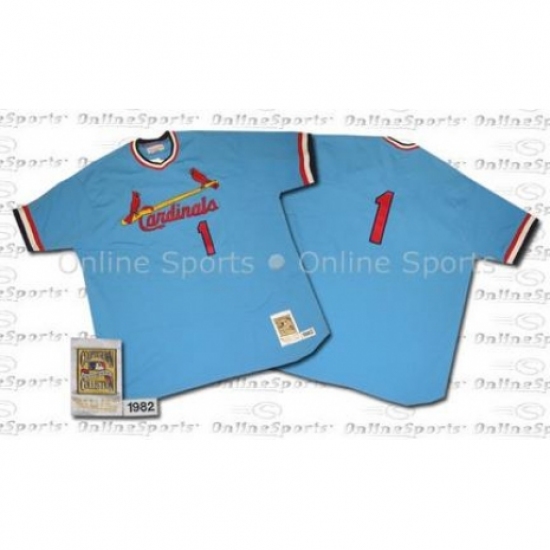 >Men's Mitchell and Ness 1982 St. Louis Cardinals #1 Ozzie Smith Replica Blue Throwback MLB Jersey
