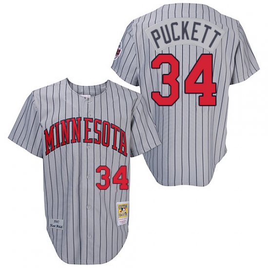 Home>MLB>Minnesota Twins>Kirby Puckett>Men's Mitchell and Ness 1987 Minnesota Twins #34 Kirby Puckett Replica Grey Throwback MLB Jersey
