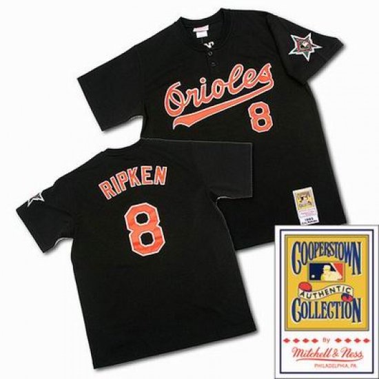 Men's Mitchell and Ness Baltimore Orioles #8 Cal Ripken Replica Black Throwback MLB Jersey