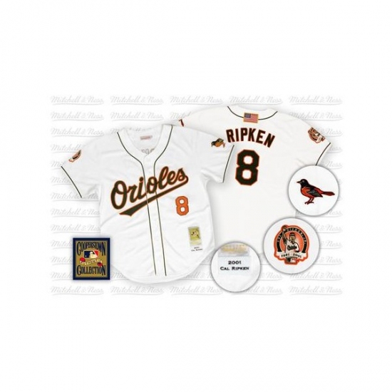Men's Mitchell and Ness Baltimore Orioles #8 Cal Ripken Replica White Throwback MLB Jersey