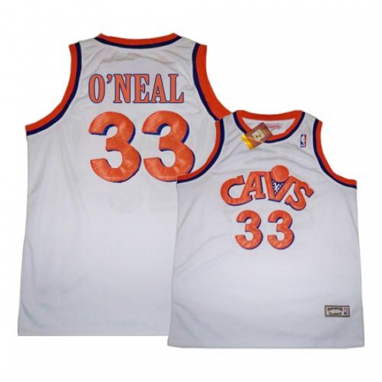 Men's Mitchell and Ness Cleveland Cavaliers #33 Shaquille O'Neal Swingman White CAVS Throwback NBA Jersey