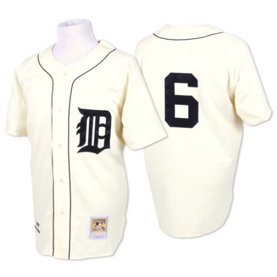 Men's Mitchell and Ness Detroit Tigers #6 Al Kaline Replica White Throwback MLB Jersey
