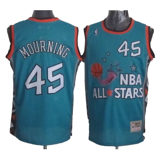 Men's Mitchell and Ness Miami Heat #45 Alonzo Mourning Swingman Light Blue 1996 All Star Throwback NBA Jersey