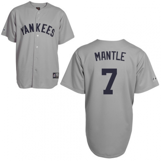 Men's Mitchell and Ness New York Yankees #7 Mickey Mantle Authentic Grey Throwback MLB Jersey