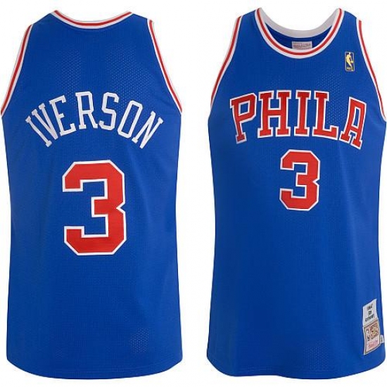 Men's Mitchell and Ness Philadelphia 76ers #3 Allen Iverson Swingman Blue Throwback NBA Jersey