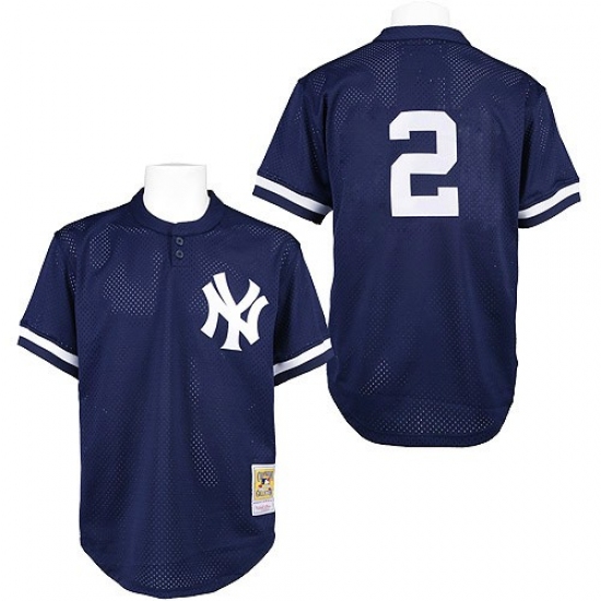 Men's Mitchell and Ness Practice New York Yankees #2 Derek Jeter Authentic Navy Blue Throwback MLB Jersey