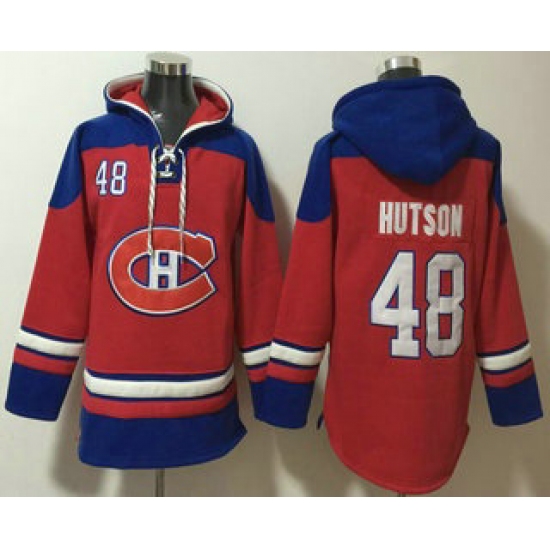 Men's Montreal Canadiens #48 Lane Hutson Red Ageless Must Have Lace Up Pullover Hoodie