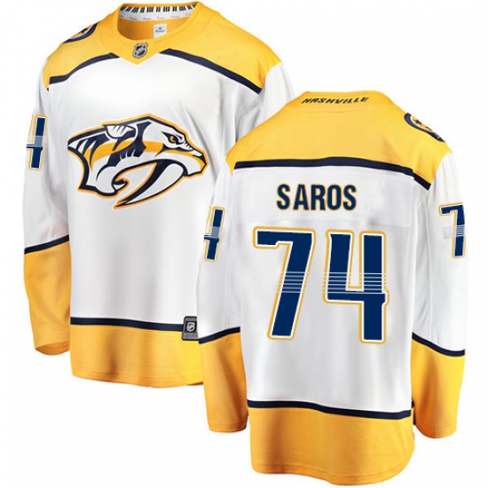 Home>NHL>Nashville Predators>Juuse Saros>Men's Nashville Predators #74 Juuse Saros Fanatics Branded White Away Breakaway NHL Jersey