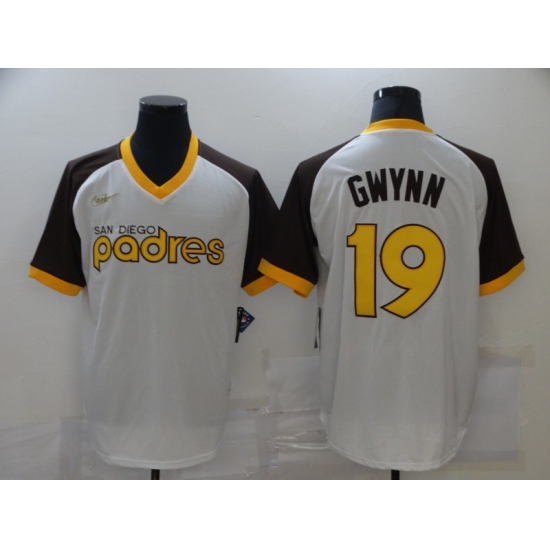 Men's San Diego Padres #19 Tony Gwynn White Cooperstown Collection Stitched Throwback Jersey