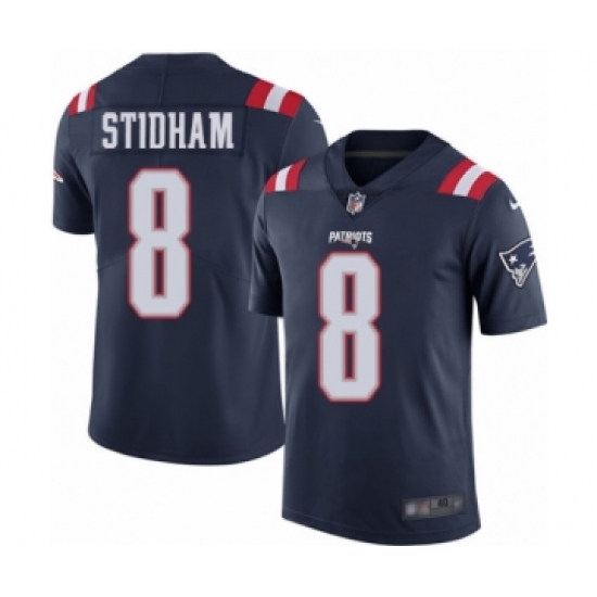 >Men's New England Patriots #8 Jarrett Stidham Limited Navy Blue Rush Vapor Untouchable Football Jersey
