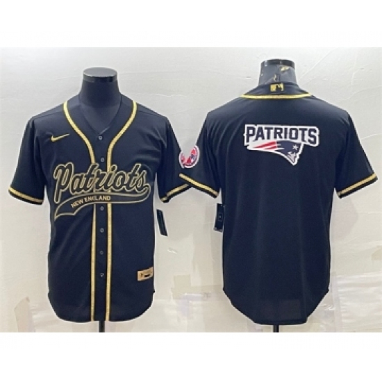 >Men's New England Patriots Black Gold Team Big Logo With Patch Cool Base Stitched Baseball Jersey