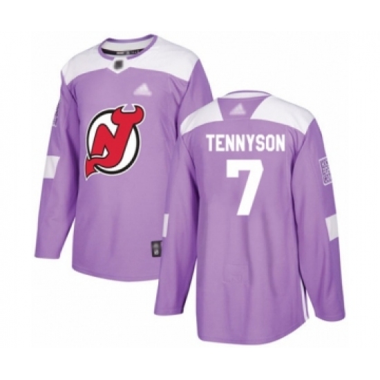 >Men's New Jersey Devils #7 Matt Tennyson Authentic Purple Fights Cancer Practice Hockey Jersey
