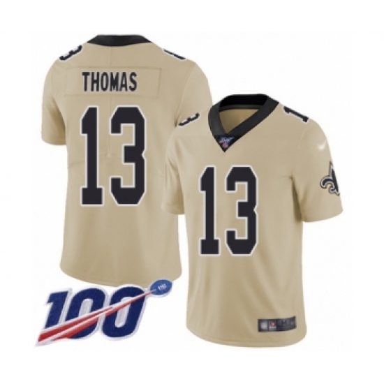 >Men's New Orleans Saints #13 Michael Thomas Limited Gold Inverted Legend 100th Season Football Jersey