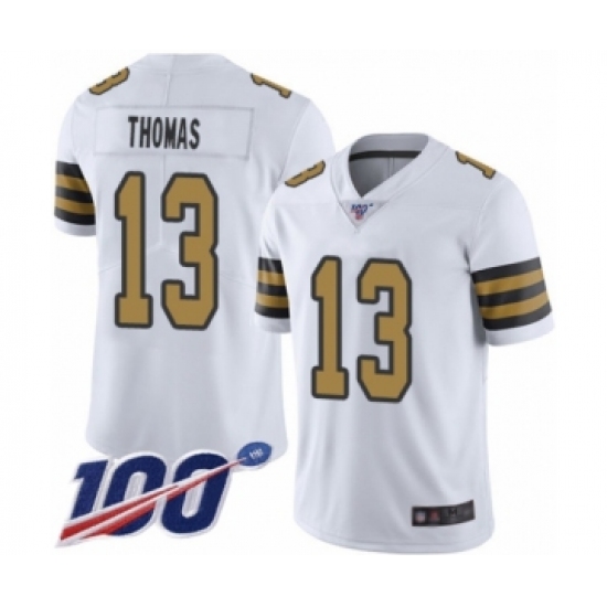 >Men's New Orleans Saints #13 Michael Thomas Limited White Rush Vapor Untouchable 100th Season Football Jersey