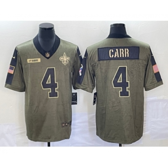 Men's New Orleans Saints #4 Derek Carr 2021 Olive Salute To Service Limited Stitched Jersey