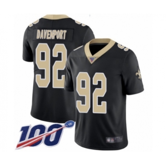 >Men's New Orleans Saints #92 Marcus Davenport Black Team Color Vapor Untouchable Limited Player 100th Season Football Jersey