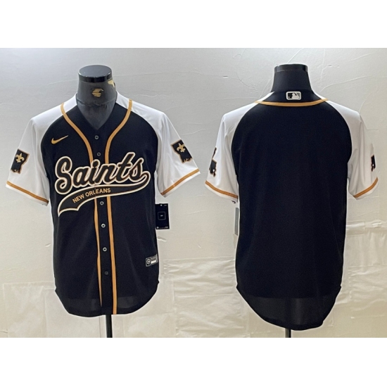 Men's Nike New Orleans Saints Black Gold Split Cool Base Stitched Baseball Jersey