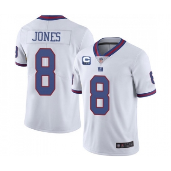 >Men's New York Giants 2022 #8 Daniel Jones White With 3-star C Patch Stitched NFL Jersey