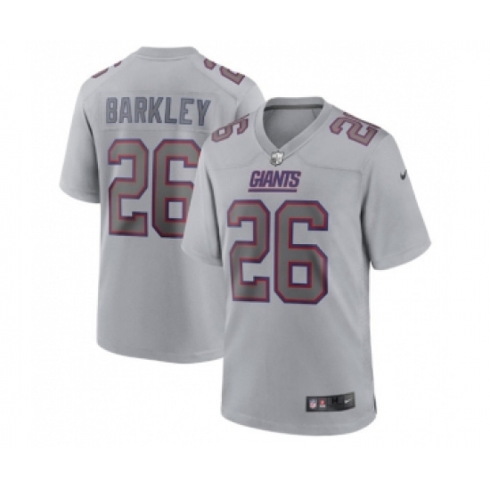 >Men's New York Giants #26 Saquon Barkley Gray Atmosphere Fashion Stitched Game Jersey