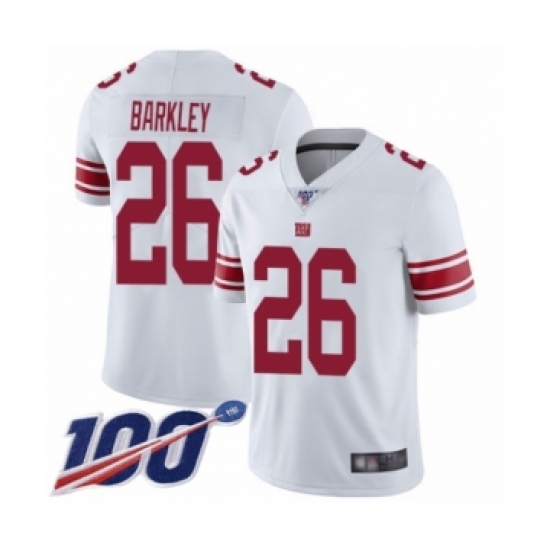 >Men's New York Giants #26 Saquon Barkley White Vapor Untouchable Limited Player 100th Season Football Jersey