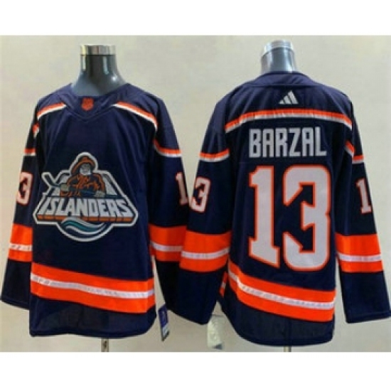 >Men's New York Islanders #13 Mathew Barzal Blue 2022 Reverse Retro Stitched Jersey