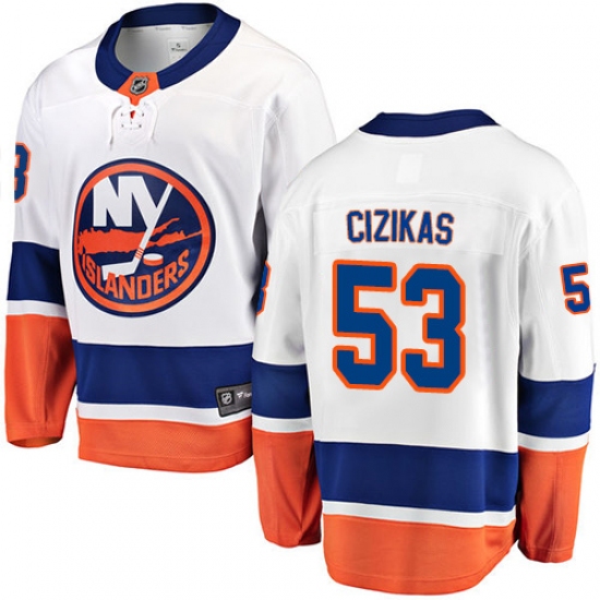Men's New York Islanders #53 Casey Cizikas Fanatics Branded White Away Breakaway NHL Jersey