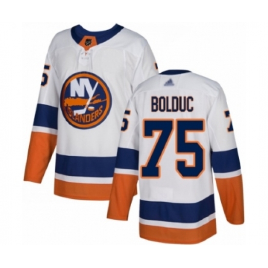 >Men's New York Islanders #75 Samuel Bolduc Authentic White Away Hockey Jersey