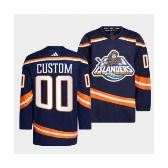 Men's New York Islanders Custom 2022 Navy Reverse Retro 2.0 Stitched Jersey