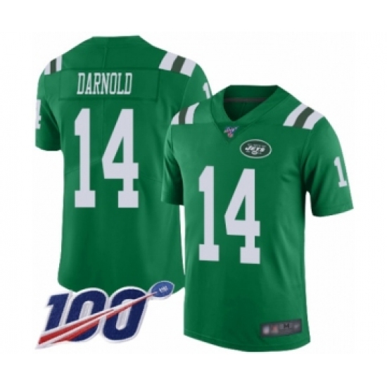 >Men's New York Jets #14 Sam Darnold Limited Green Rush Vapor Untouchable 100th Season Football Jersey