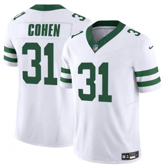 >Men's New York Jets #31 Tarik Cohen White 2023 F.U.S.E. Vapor Limited Throwback Football Stitched Jersey