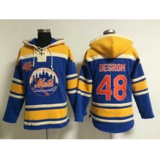 >Men's New York Mets #48 Jacob DeGrom Alternate Blue MLB Hoodie