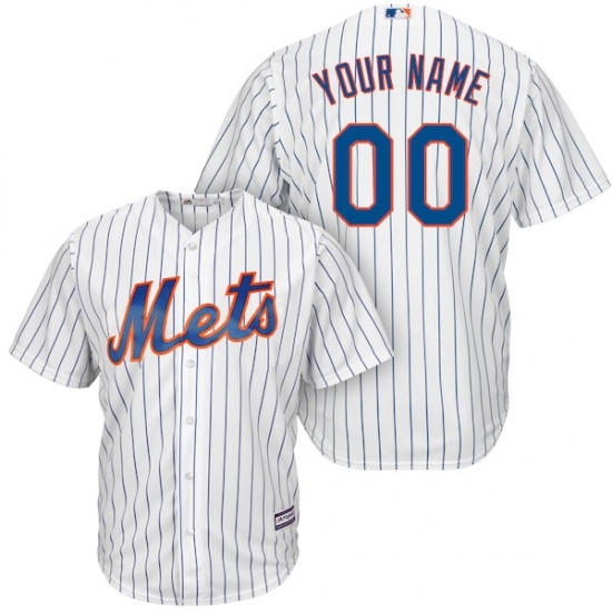 >Men's New York Mets Majestic White/Royal Home Cool Base Custom Jersey
