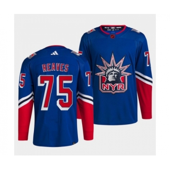 >Men's New York Rangers #75 Ryan Reaves Blue 2022 Reverse Retro Stitched Jersey