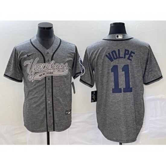 Men's New York Yankees #11 Anthony Volpe Number Grey Gridiron Cool Base Stitched Baseball Jersey