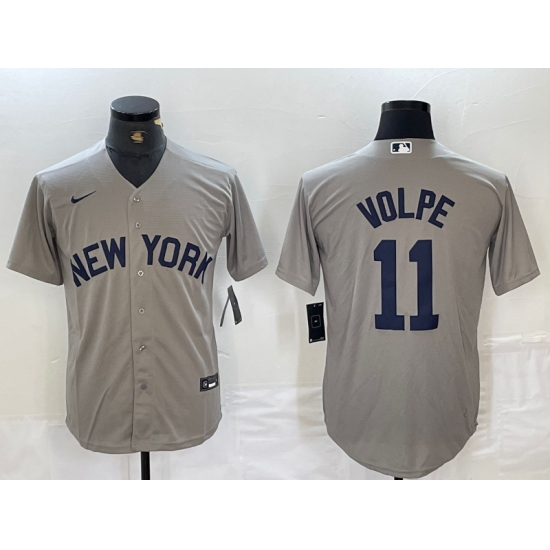 Men's New York Yankees #11 Anthony Volpe Name 2021 Grey Field of Dreams Cool Base Stitched Baseball Jersey