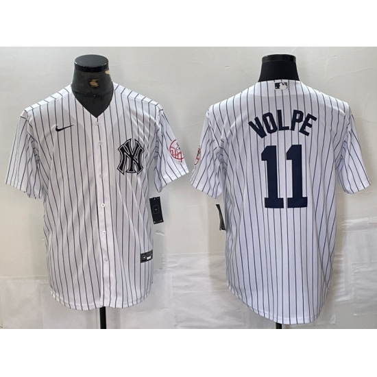 Men's New York Yankees #11 Anthony Volpe Navy Pinstripe Fashion Cool Base Jersey