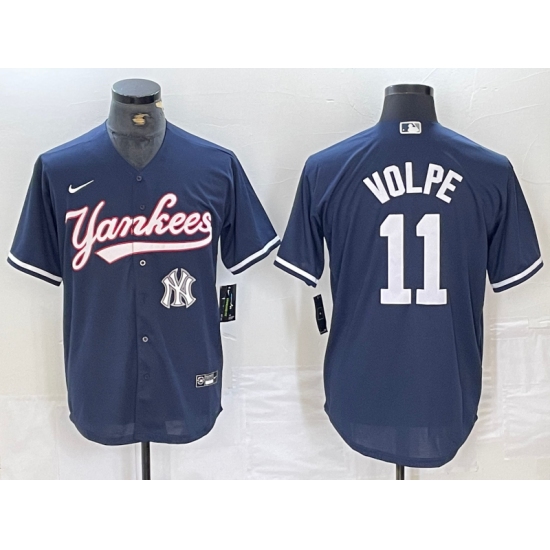 >Men's New York Yankees #11 Anthony Volpe Navy With Cool Base Stitched Baseball Jersey
